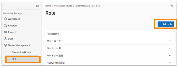 From the sidebar menu in the Workspace Settings screen, click [Master Management] > [Role].