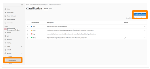 Click [Settings] > [Classification] in the side menu.