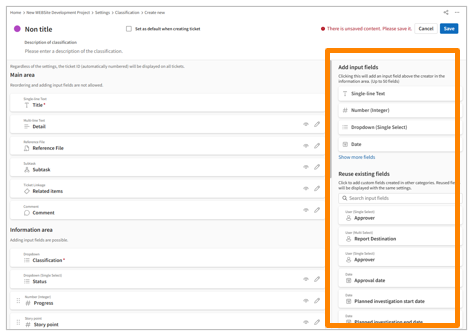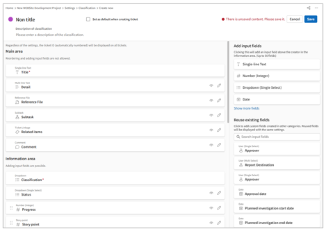 Customize ticket classification and input fields (Agile)