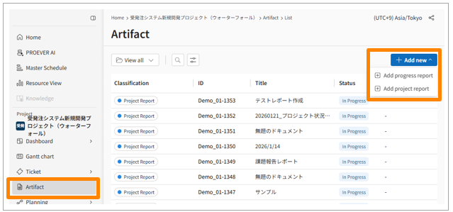 - Click [Artifact] in the side menu.