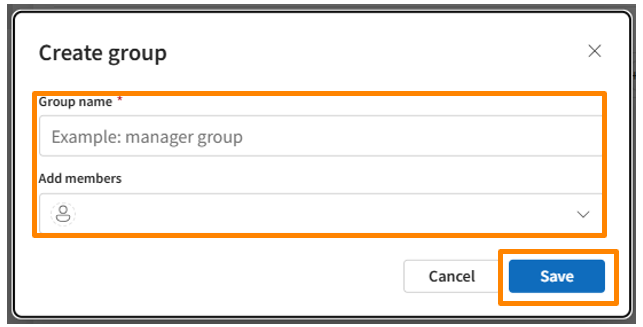Enter the Group Name, add any desired Members (from the "Add members" section), and then click [Save].