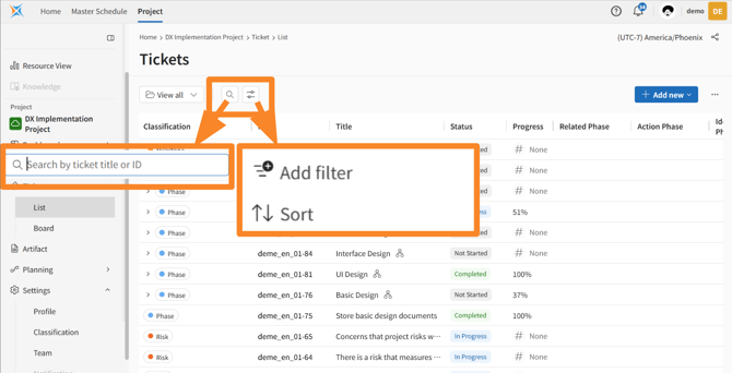 Set the appropriate search criteria by clicking [Add filter] and [Sort].