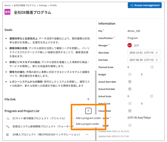 Click [+] on the right side of the "Program and Project List."