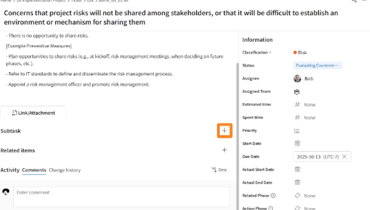 Click the [+] icon displayed to the right of "Subtasks/Related Items."
