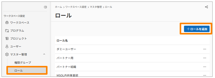 - 右上の[ロールを追加]をクリックします。