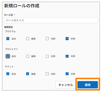 - ロール名、権限設定を組み合わせて、[保存]をクリックします。