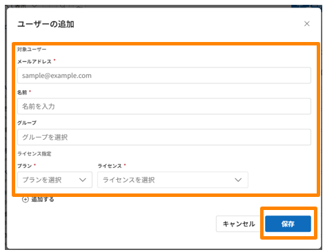 ライセンスには契約IDを入力してください。契約IDはユーザー追加モーダルから確認できます。