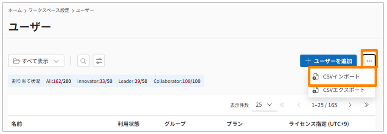 (3点リーダー)]>[CSVインポート]をクリックします。