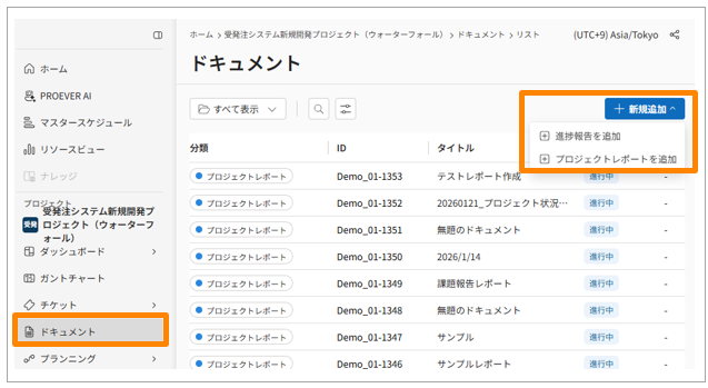 - [新規追加]>[進捗報告を追加]をクリックします。