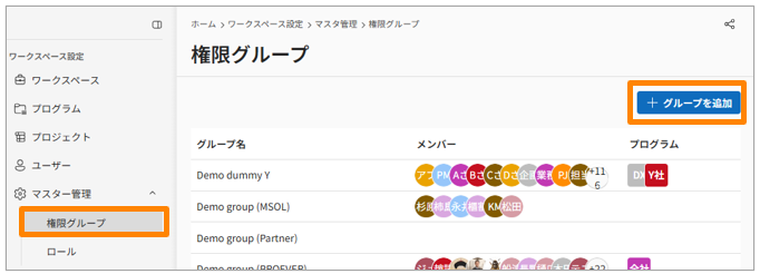 権限グループを追加する