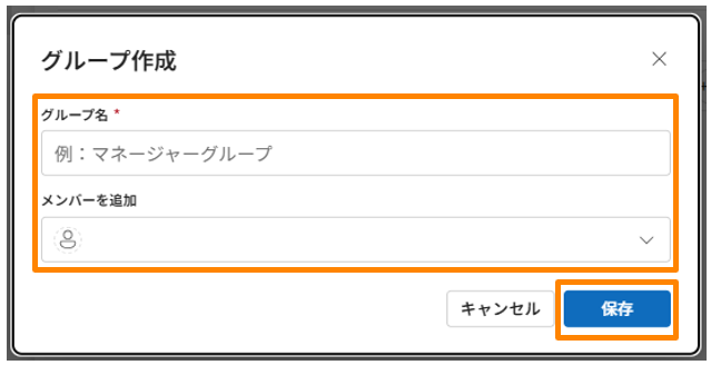- グループ名、メンバーを追加から任意のメンバーを追加し、[保存]をクリックします。