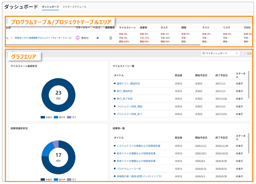 このとき、プログラムを選択している場合はプログラムのダッシュボード、プロジェクトを選択している場合はプロジェクトのダッシュボードが表示されます。