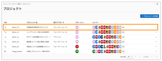 もしくは、ワークスペース設定画面のサイドメニュー[プロジェクト]をクリックします。