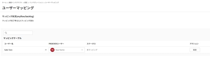 担当者についてはインテグレーション後に設定メニューからマッピングすることができます。