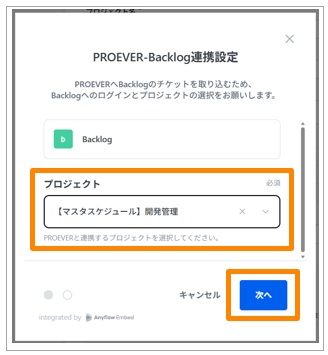 - 【PROEVER】連携したい外部ツールのプロジェクトを選択し、[完了]をクリックします。