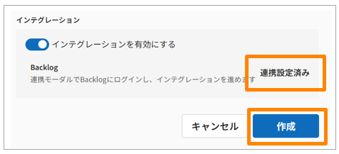 - 【PROEVER】「連携設定済み」と表示されていることを確認し、[作成]をクリックします。