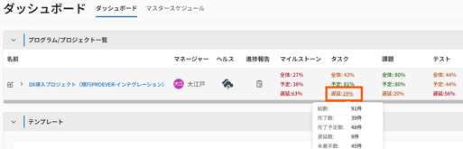プロジェクト状況の把握やダッシュボードの見方について、事前にこちらの記事(プロジェクトの状況を確認しよう)をご確認ください。(公開後に「プロジェクトの状況を確認しよう」リンク添付)