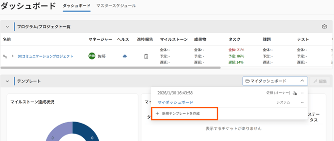 手順1. ダッシュボード>テンプレート>「新規テンプレートを作成」をクリック