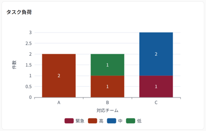 テンプレートをカスタマイズし、チームや担当者ごとの負荷状況や、タスクの消化率を確認してみましょう。