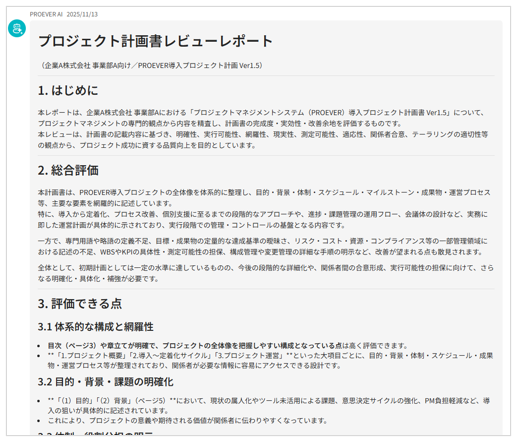 PROEVER AIが専門的な観点でレビューを行い、良い点と改善すべき点をフィードバックします。