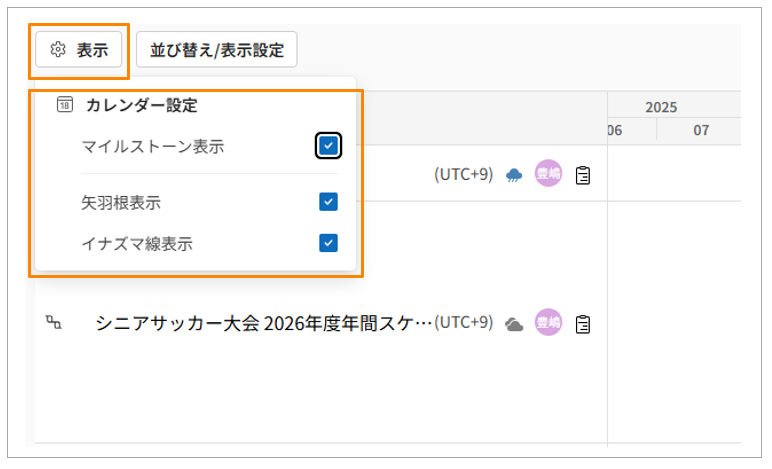 ]から、表示/非表示を設定できます - カレンダーエリアの縮尺を設定する