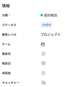 報告先/ウォッチャー:進捗報告の内容が更新されたときに、メールで通知が飛びます。