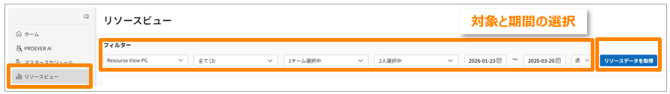- メニュー選択:サイドメニューの[リソースビュー]をクリックします。