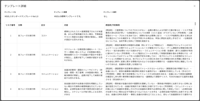 特定できます。 - MSOLの標準リスクテンプレートを利用し、初めてリスク管理を実施する担当者でも
