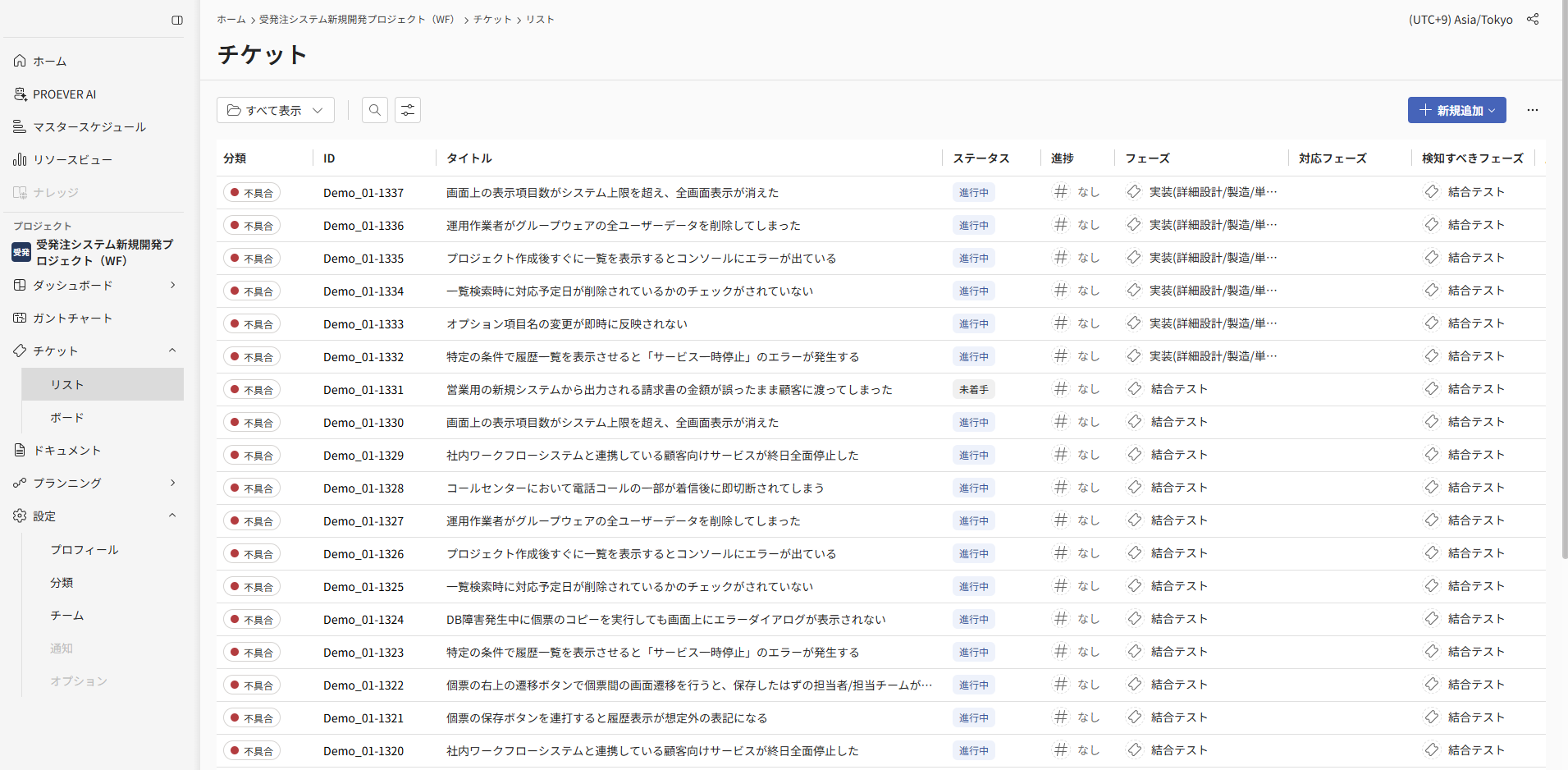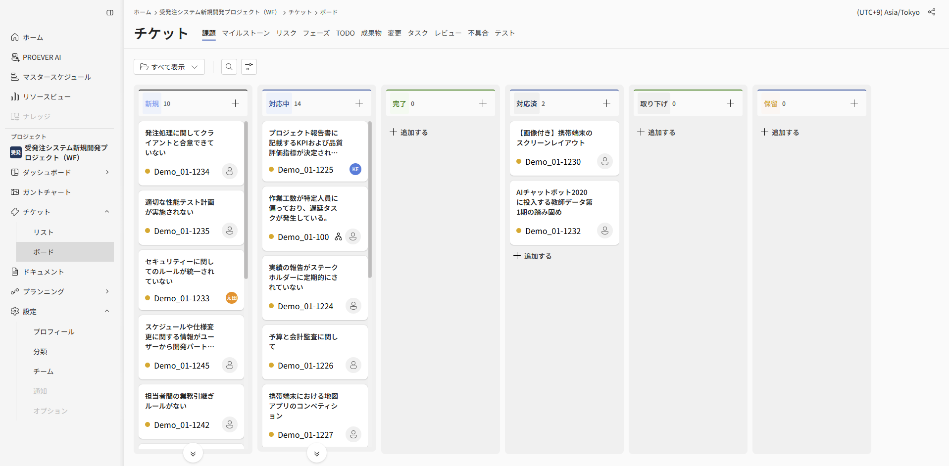 PROEVERでは、MSOLの知見をもとにプロジェクト管理に必要なチケット分類と管理項目がデフォルトで設定されています。